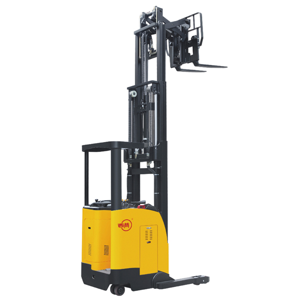 貨叉前伸距離,單級可實現0.5米,雙級最大可達到1.0米,可實現4排貨架的存放,有效的利用倉庫面積。
